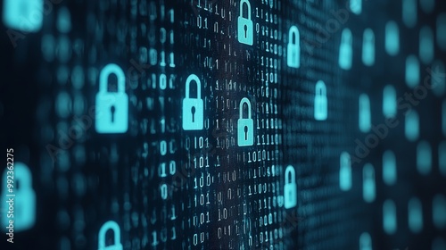Digital Transactions Concept with Secure Data Encryption and Cybersecurity Locks