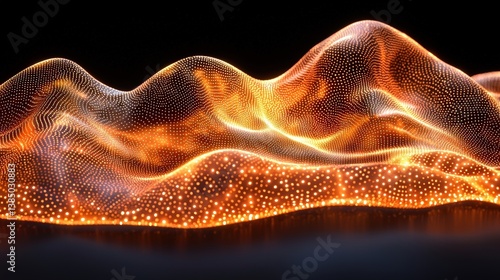 Digital Wave Form with Glowing Particles in Bright Orange and Yellow Against Dark Background