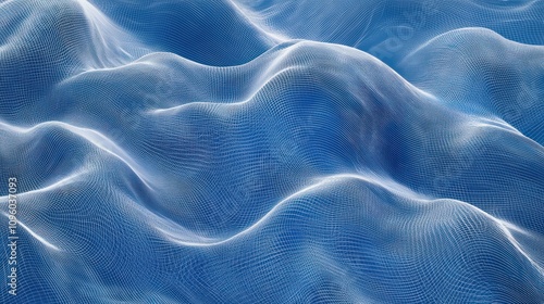 Digital wireframe waves with numerical data, blue technical background, visualization concept. 3D Rendering