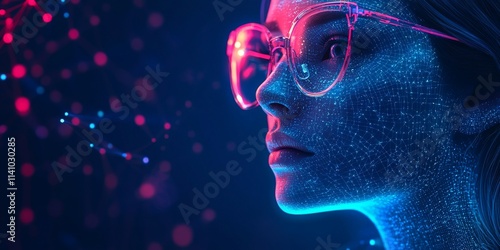 Digital Woman with Glowing Data Overlay