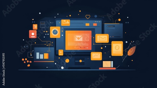 Digital Workspace With Colorful Data Visualizations and Email Notifications on a Computer Screen in a Modern Design