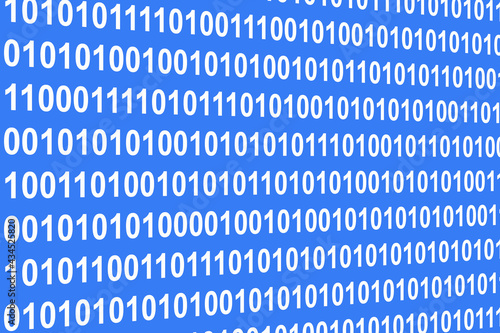 Digital world. Binary code with zeros and ones on a computer screen. Virtual realtiy.