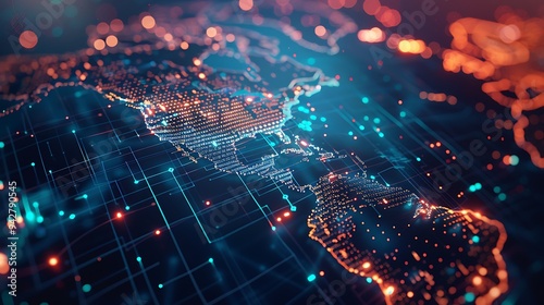 Digital World Map North America Technology Network Global Connection
