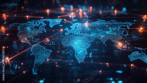 Digital World Map Global Network Connections