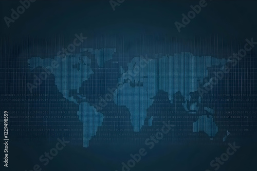 Digital World Map Shows Global Connectivity with Binary Code Data Streams.