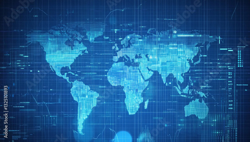 Digital World Map with Data Streams and Technology Background
