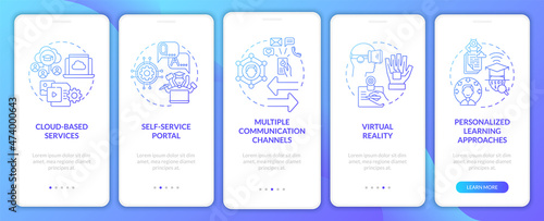Digitalization of learning onboarding mobile app page screen. Technology walkthrough 5 steps graphic instructions with concepts. UI, UX, GUI vector template with linear color illustrations