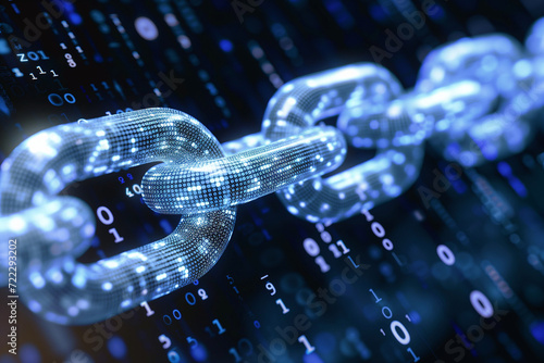 Digitally linked chain, block chain concept, sparkling binary code - Generative AI