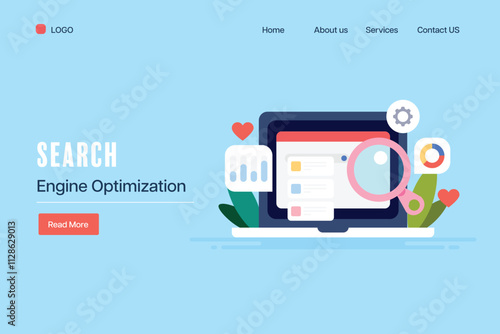 Display website link with description ranking on search engine page, content optimization, digital data and SEO concept.