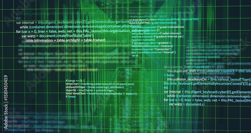 Displaying programming code overlay floating across digital grid interface, with loop constructs