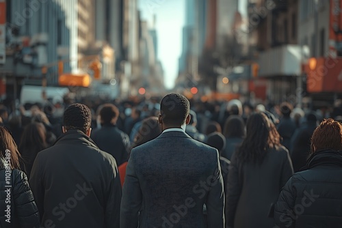 Diverse Crowd Walking NYC Cityscape Sunlight