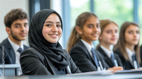 Diverse Group of Students in Classroom Smiling and Engaged in Learning