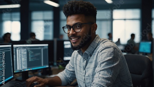 Diverse Office, Enthusiastic White IT Programmer Working on Desktop Computer, Male Specialist Creating Innovative Software, Engineer Developing App, Program, Video Game, Writing Code in Terminal