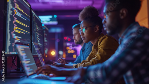 Diverse team of coding software engineers at work