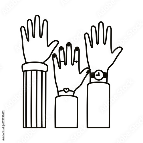 diversity hands human team up line style icon