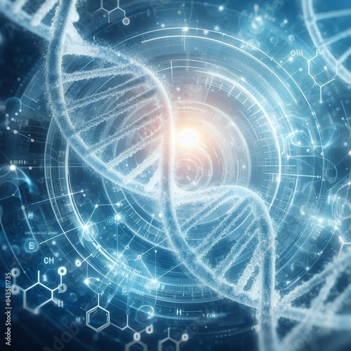 DNA gene background science helix cell genetic medical biotechnology biology bio. Technology gene DNA abstract molecule medicine blue 3D background research digital futuristic created by generative ai
