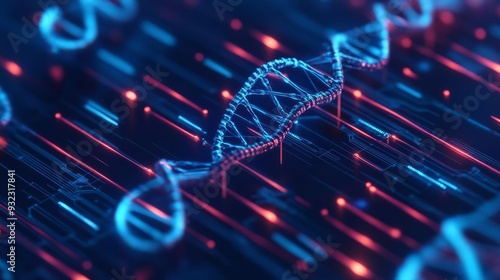 DNA in computing, integration of genetic material with tech, 3D illustration