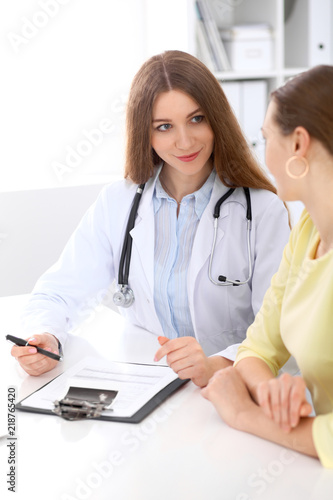 Doctor and patient sitting at the desk near window