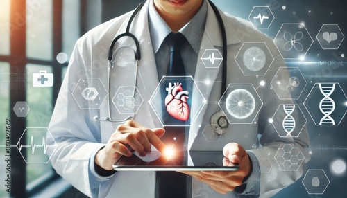 Doctor Using Digital Tablet with Medical Holograms