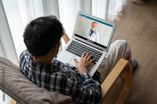 Doctor video call online by modish telemedicine software application for virtual meeting with patient