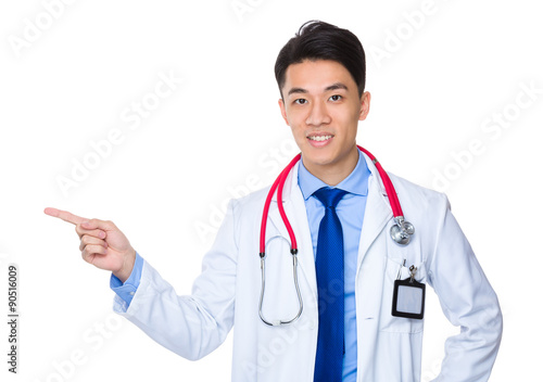 Doctor with finger point aside