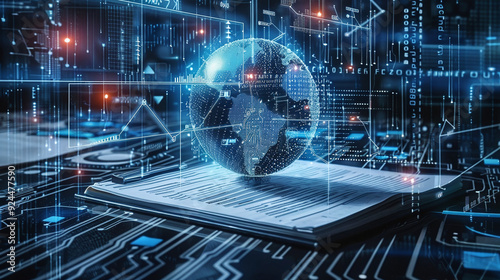 Document AI artificial intelligence process data analysis with technology processor to plan business information data, technology, network corporate concept. 3d render