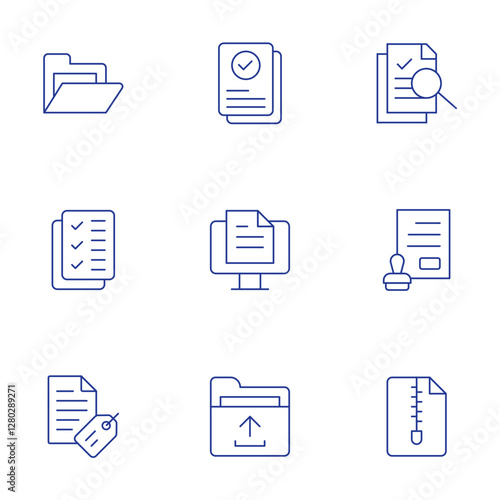 Document icons set. Thin Line style, editable stroke. research, folder, zip, to do list, computer, file, label, official documents