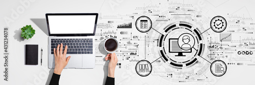 Document management system concept with person using laptop computer