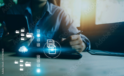 Document Management System (DMS), online documentation database and process automation to efficiently manage files, knowledge and documentation in enterprise with ERP. Corporate business technology.