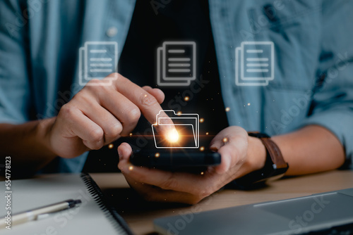 Document Management System (DMS), online documentation database and process automation to efficiently manage files, knowledge and documentation in enterprise with ERP. Corporate business technology.