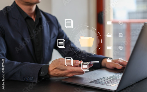 Document Management System (DMS), online documentation database and process automation to efficiently manage files, knowledge and documentation in enterprise with ERP. Corporate business technology.