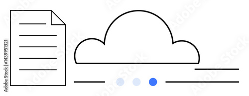 Document next to a cloud icon with progress dots representing file upload and storage process. Ideal for cloud computing, data storage, file sharing, teamwork, innovation, digital workflows, simple