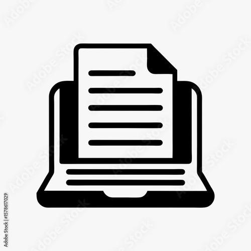 Document on Laptop Icon, Digital File with Cursor Pointer, Online Editing