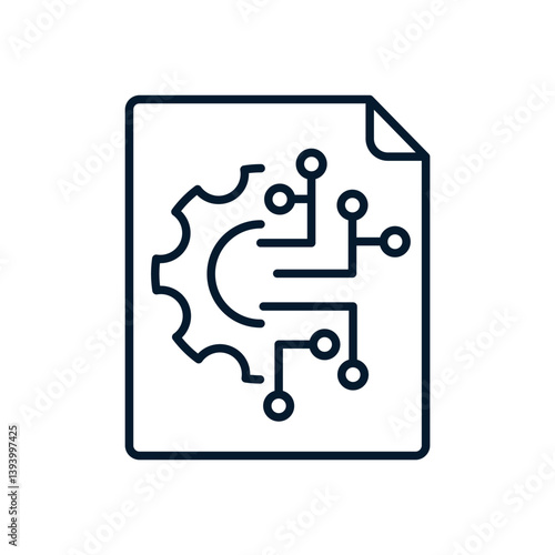 Document, spine, circles, lines. The concept represents a multifunctional technology for processing, structuring and integrating data. Vector icon isolated on white background.