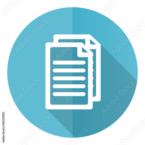 Document vector icon, file, copy, flat design blue round web button isolated on white background