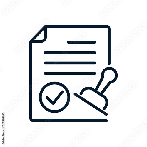 Document with stamp. Approved, accepted document. Vector linear icon isolated on white background.