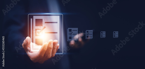 Documents management information system concept, Businessman using visual screen internet for Documents management information system and ERP program data directory in company, ERP document management