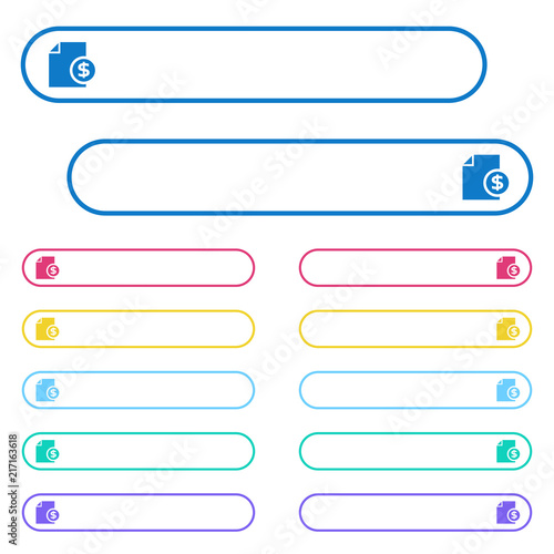 Dollar financial report icons in rounded color menu buttons
