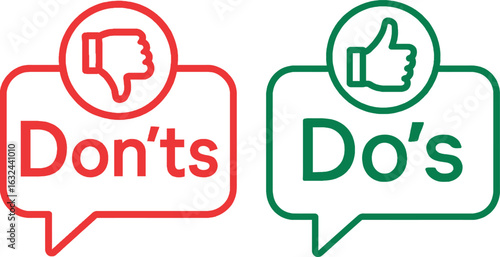 Do’s and Don’ts Icon Set – Thumbs Up Down, Speech Bubble, Red Green Outline, Advice Tips Vector Clipart