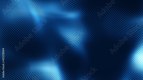 Dot white blue wave light screen gradient texture background. Abstract technology big data digital background. 3d rendering.
