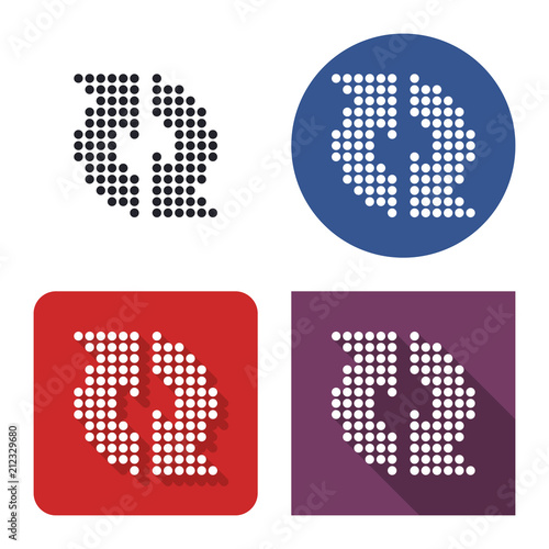 Dotted icon of recycling arrows in four variants. With short and long shadow