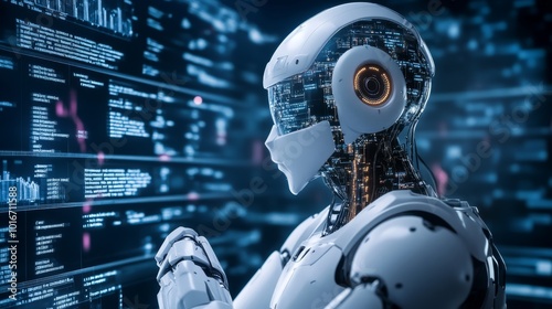 Double exposure a data analyst using technology AI for working tool for data analysis Chatbot Chat with AI, using technology smart robot AI, artificial intelligence to generate something or Help solve