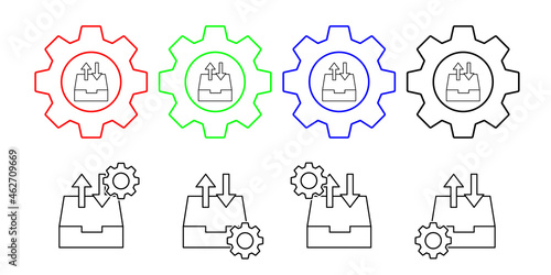 Down arrow, message vector icon in gear set illustration for ui and ux, website or mobile application