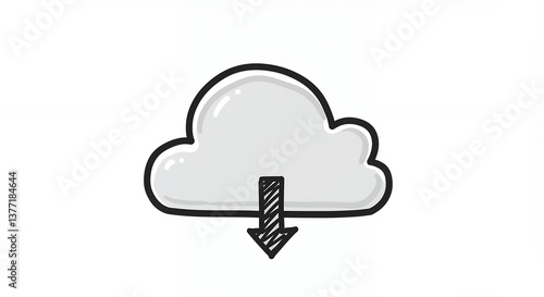 Downloading From Cloud Concept Hand Drawn Style with Arrow Symbol