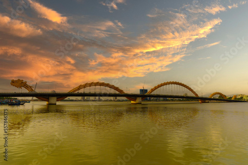 Dragon bridge with Han river in Da Nang city. Landmark and popular for tourist attraction. Vietnam and Southeast Asia travel concept