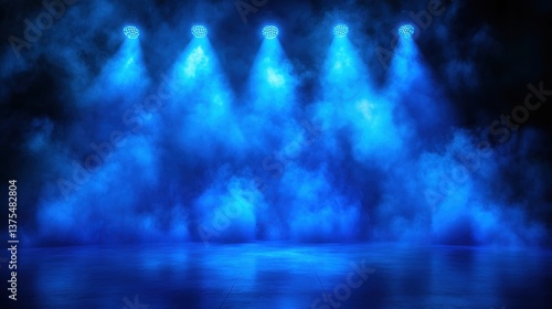 Dramatic Blue Stage Lighting with Smoke and Fog Effect