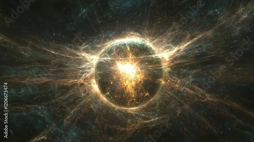 Dramatic Cosmic Explosion with Radiant Light Effects in Deep Space, Displaying Colorful Nebula and Stellar Backgrounds for Celestial Imagery