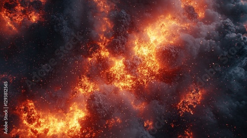 Dramatic Explosion with Fiery Orange Flames and Dark Smoke Clouds