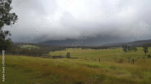 Dramatic Grey Clouds Over Lush Countryside Landscape in Australia