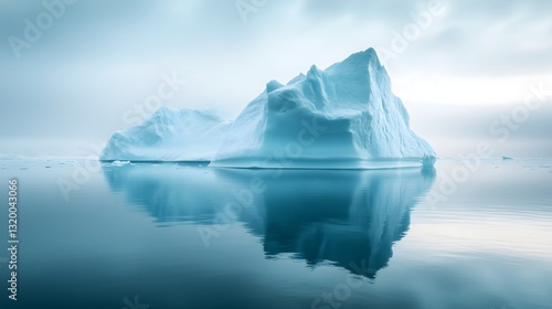 Dramatic iceberg floating serenely in calm Arctic waters under a soft, muted sky